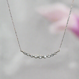 Delicate 18k gold curved bar pendant, perfectly adorned with nine tiny round diamonds. This minimalist piece features a gently arched design, each diamond meticulously set. Perfect for adding a subtle sparkle to your everyday wear or layering with other necklaces for a customised look.